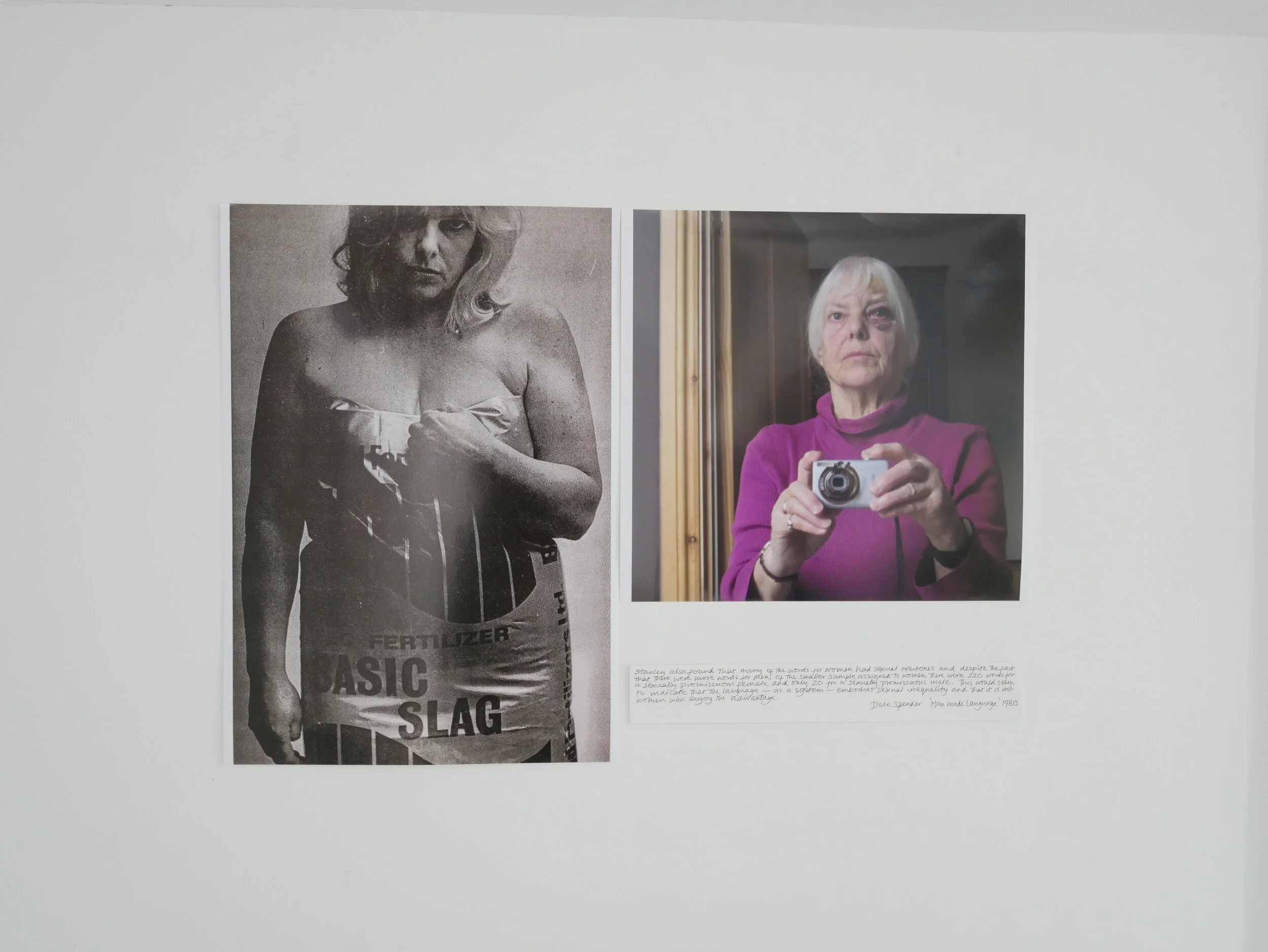 The ‘Basic Slag’ image was related to a text by a feminist writer interested by the large number of words (220) used to describe sexually promiscuous women and the far smaller number (20) for men. I was reluctant to ask another woman to pose in the discarded rubbish bag so wore it myself.