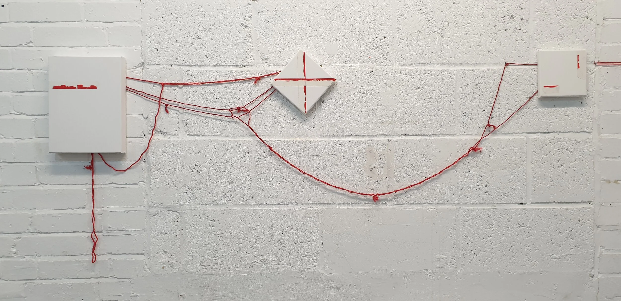 “I intended to use leftover materials that I could construct and break down the form of, causing some kind of tension in relation to sharing a space and forming connections with other surrounding work.”